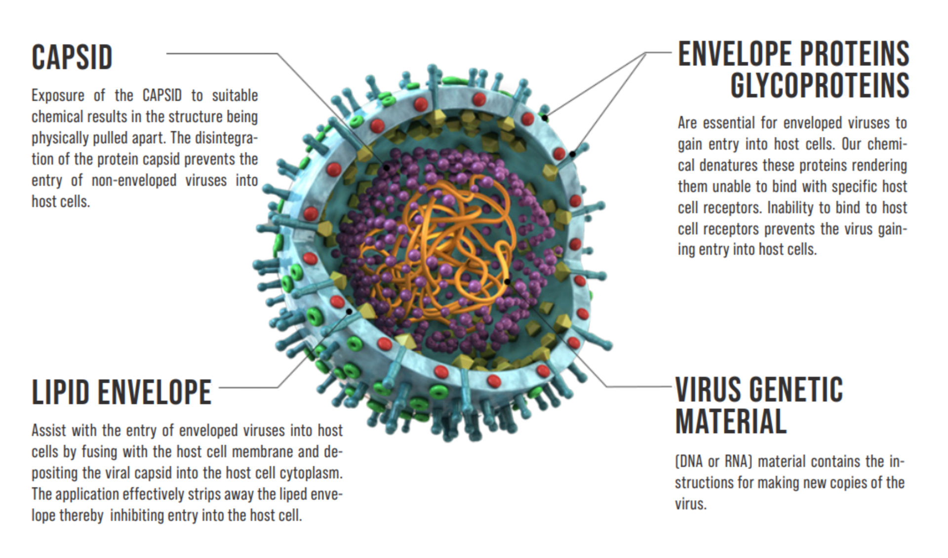 New paragraphCorona virus (COVID-19) is classified as an ‘enveloped virus’, its physical structure is similar to other ‘enveloped viruses’ which in this case means that the COVID-19 capsid containing the nucleic acid essential to viral replication is surrounded by a lipid membrane, similar to other enveloped viruses such as influenza. In the hierarchy of microbial resistance to disinfectants and sterilants, enveloped viruses are relatively easy to kill. However, like most viruses and pathogens they are hard to locate and invisible hence our wraparound full coverage Specialist Electrostatic spraying methodology. The lipid based membrane ‘envelope’ of all enveloped viruses (including COVID-19) contains lipids and proteins and it is these proteins which bind to receptors on host cells and enable the virus to ‘infect’ the host cells (i.e. result in a human infection). Performing the deep clean process, steam cleaning and subsequently spraying an effective and safe product electrostatically provides the best chance of reducing the risk of infection. Our process provides optimum coverage and protection essentially by: disrupting the lipid envelope, changing the shape and structure of the virus binding proteins, and denaturing the proteins of the virus capsid. Our process effectively dismantles the physical structure of enveloped viruses and renders them ineffective and therefore unable to cause infection